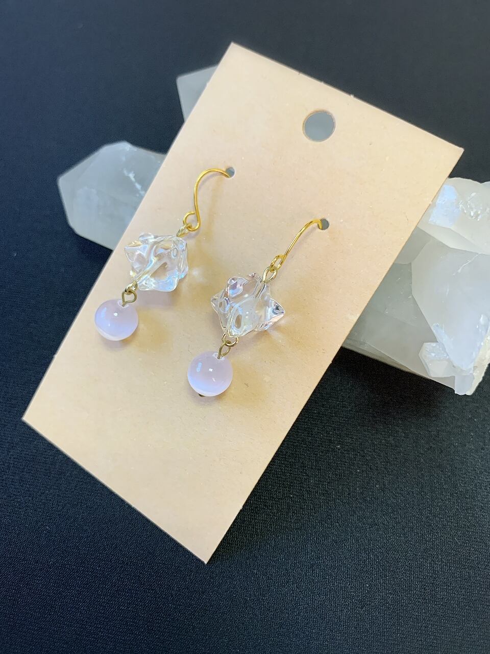 マカバスター水晶&ピンクセレナイトピアス