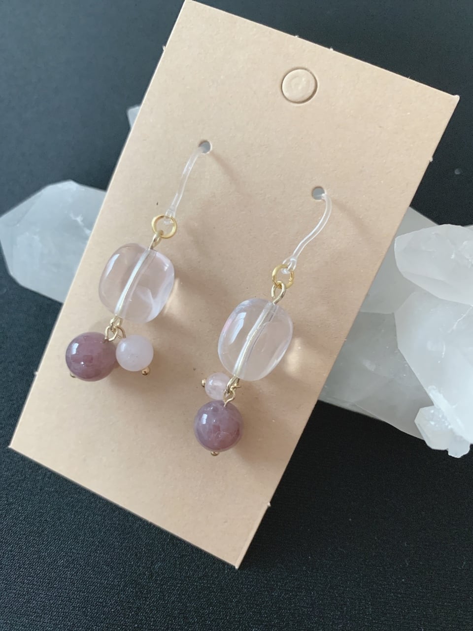 ローズクォーツ&ディープローズクォーツピアス