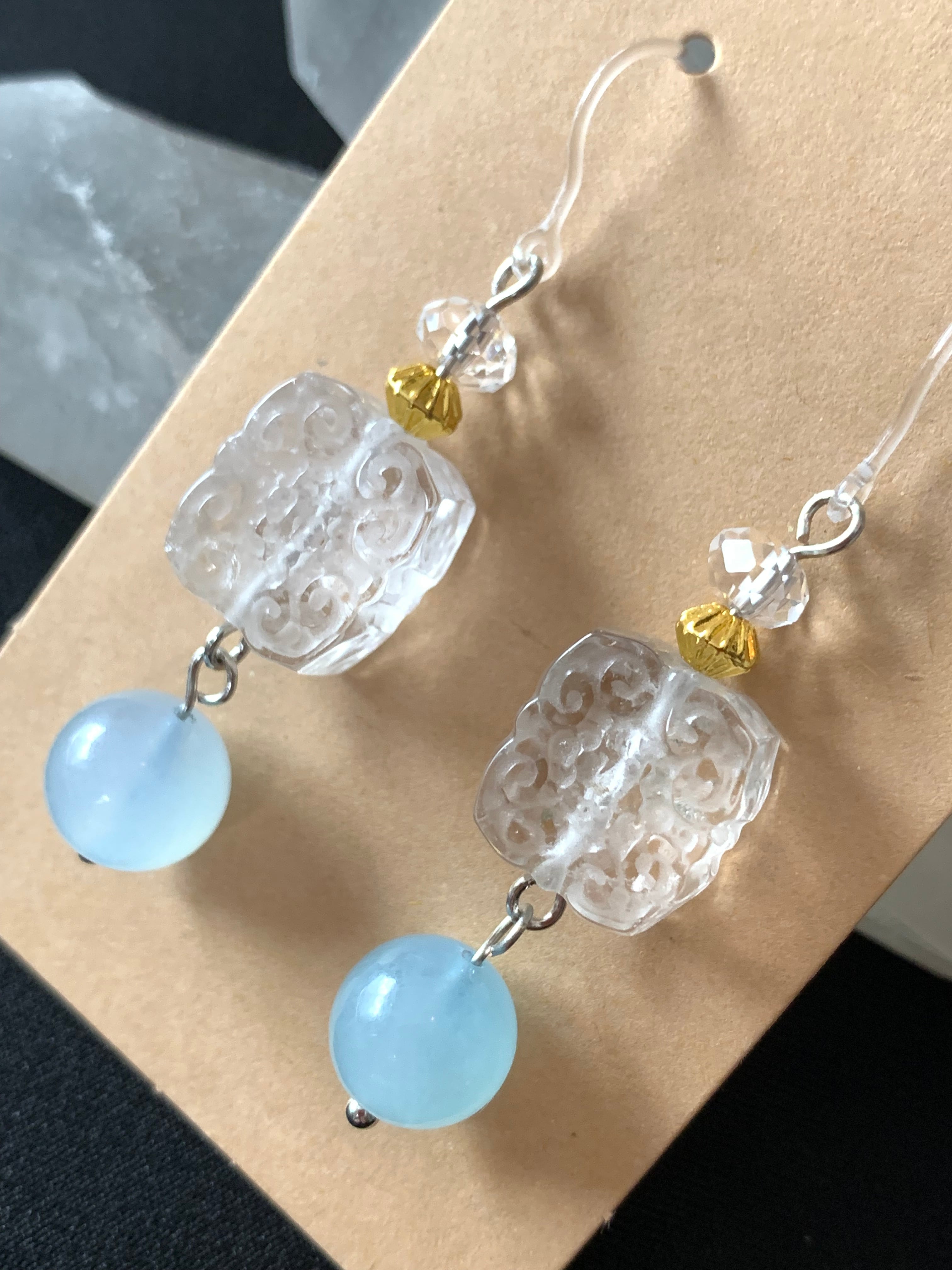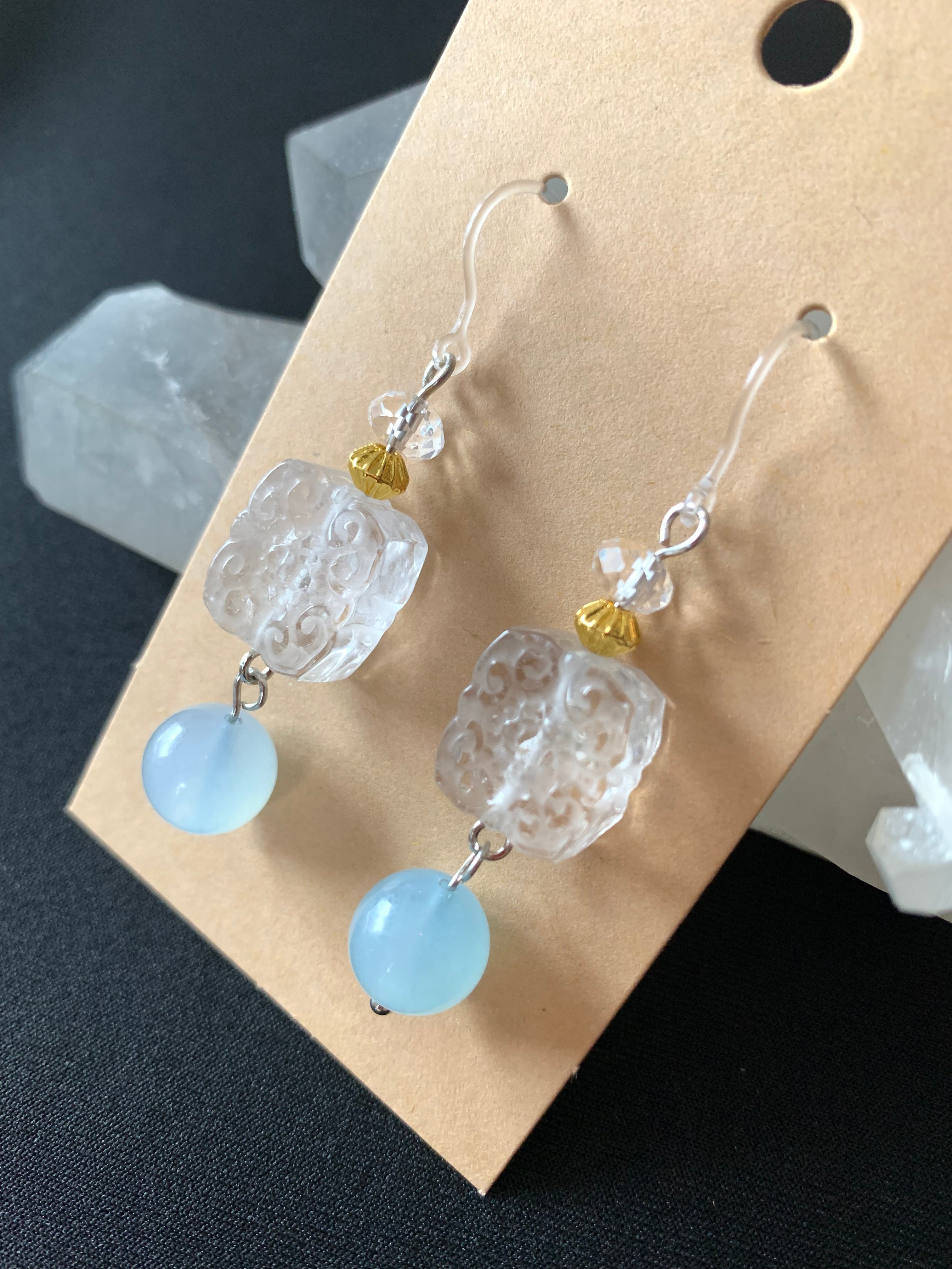 水晶(かいもんじゅ彫り)アクアマリンピアス